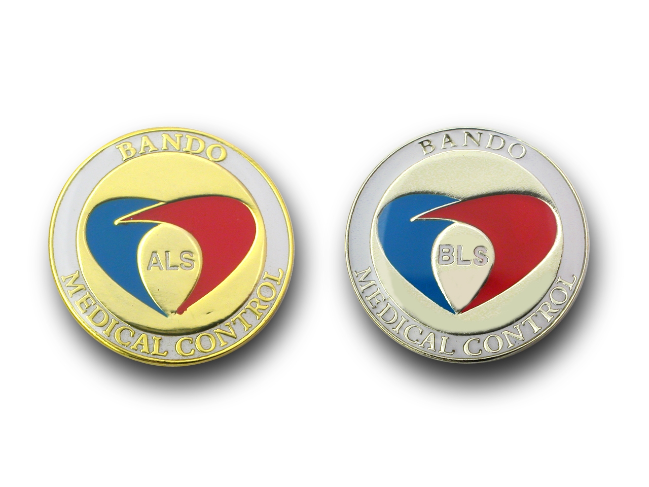 ◆PINS FACTORY(ピンズファクトリー)◆ ピンズ実例No.292BANDOメディカルコントロール協議会 様 「BANDO−BLS」「BANDO−ALS」ピンバッジ★救命処置講習の修了章にオリジナルピンバッジ