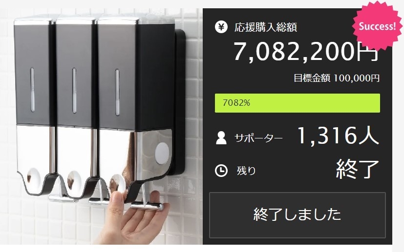 Makuakeで販売本数1,300本を突破、 大容量&大ディスペンス量の マグネット式壁掛けディスペンサーが販売開始