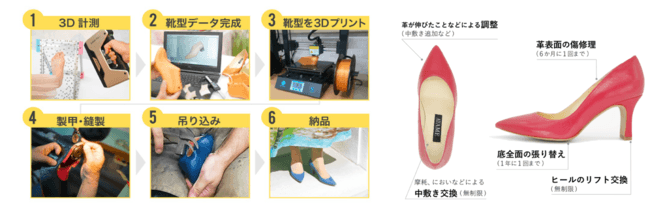 従来6ヶ月ほどかかるフルオーダーシューズ製作の時間を3D化により、わずか1ヶ月で実現。
