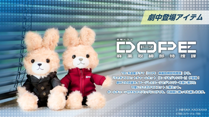 TBS系金曜ドラマ『DOPE 麻薬取締部特捜課』から、「うさぎマスコットチャームセット(スーツ&ジャンパー)」が登場!
