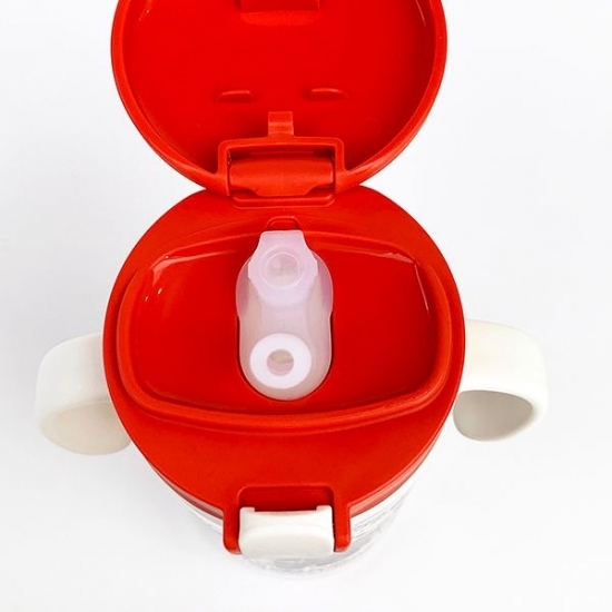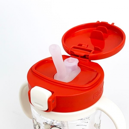 フタを開けるとストローが♪お出かけ時にもすぐに飲めるので、お子さんがグズった時にも便利です。