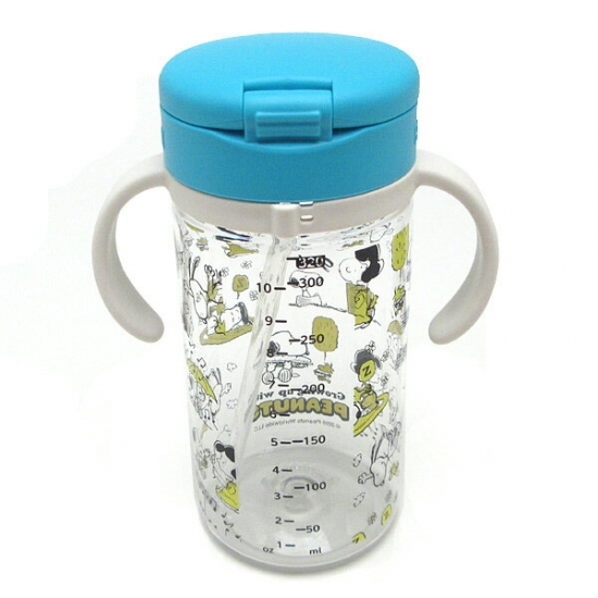 こちらはブルーストローマグ。スヌーピーやルーシー、チャーリーブラウンがデザインされた楽しい絵柄です。両手で持てるので、ストローで飲めるようになったばかりのお子さんも、飲みやすいんですよね。