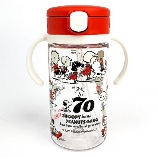 70周年記念デザインのストローマグです。赤と白を基調にしたカラフルさがキュートです。初期の頃のスヌーピーのデザインが、レトロチックで味があるんですよね♪70周年のロゴも入っているので、レア感もありますね。