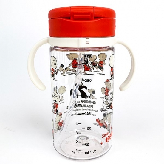 小さなサイズには、オレンジ色のフタがついたストローマグも♪スヌーピーとチャーリーブラウンの仲良しデザインが魅力です。260ml入るので、ジュース用にもピッタリですね♪