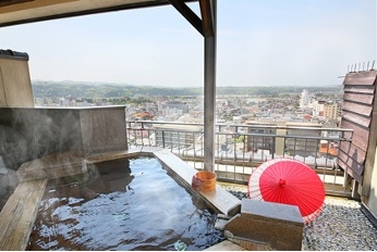 自慢の貸切風呂は最上階に位置し、遥かに広がる加賀平野の景色を眺めながらお楽しみいただけます。