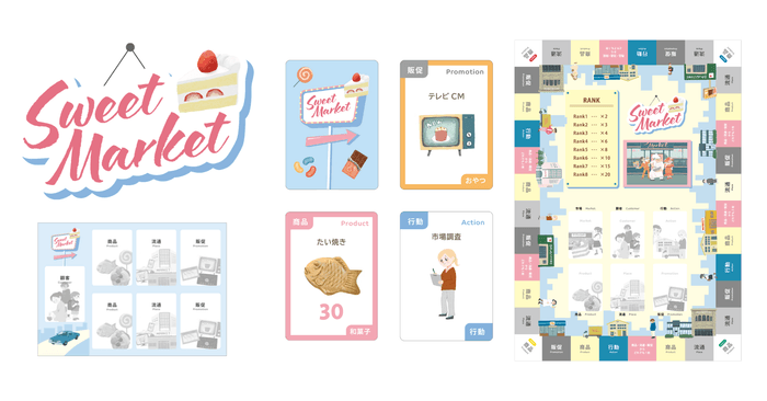 「スウィート・マーケット」は4人1組で、商品・流通・販促など76枚のカードとゲームボードを用いて遊ぶ独自開発のゲームです。座学の企業研修は「退屈、つまらない」「実務で役立たない」と敬遠されがちです。それに対して当社は現在流行しているボードゲームを企業研修と組み合わせ、ゲームを遊びながらマーケティングを学べるよう、3年をかけて開発し、2024年にリリースしました。すでに200名以上に体験していただきました。