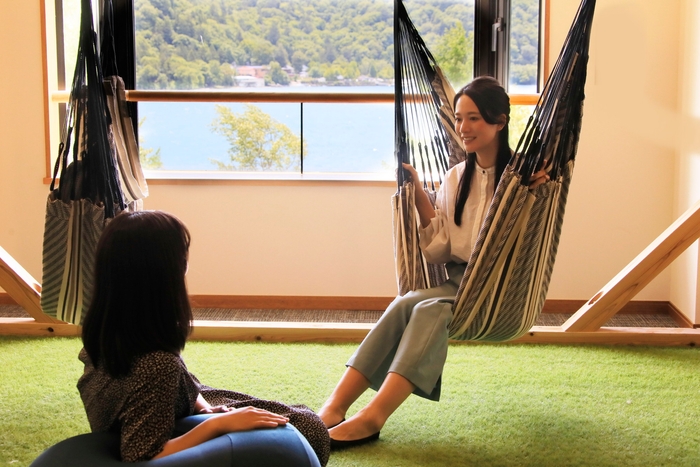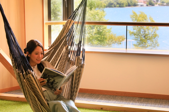 ・ハンモックやソファでドリンク片手に寛ぐ【レイクビューラウンジ】