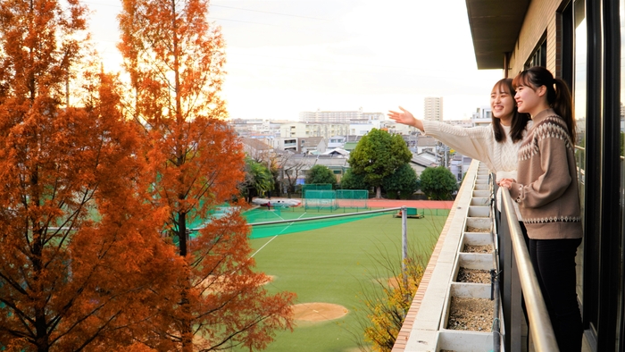 さらに、四季を通して、ソメイヨシノ、つつじ、けやき、もみじ、銀杏、南天など、色鮮やかな花々や実が学生たちや訪れる人々の目を楽しませてくれます。