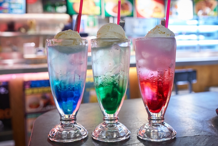 限定で、ブルーとピンクのクリームソーダを展開。『無人島には水と漫画とアイスクリーム』の装丁をイメージした色鮮やかなクリームソーダです。