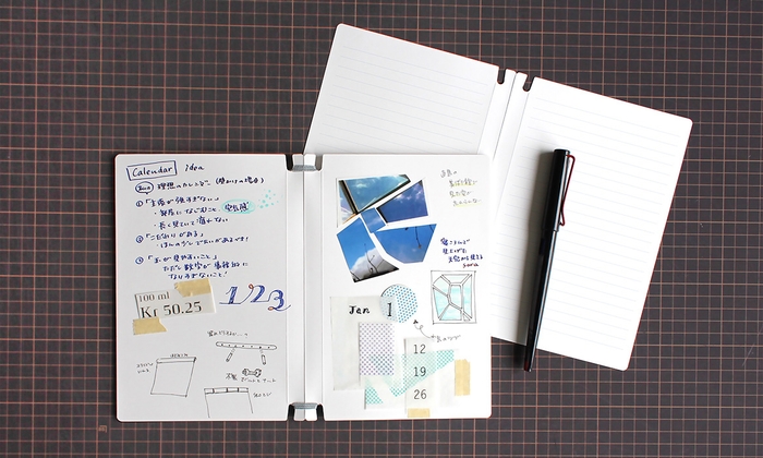 仕事のメモも、旅のスケッチも、レシピの収集も、パッケージやチケットのスクラップも…どんなスタイルにもフィットできるノートです。自分勝手に、わがままに、やりたいようにお使いください。