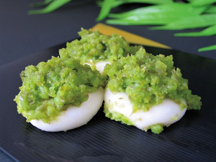 山形県産の枝豆と地元尾花沢市で収穫した「ひめのもち」を杵つきにこだわり手作りで仕上げたずんだん餅。