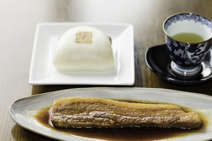 長崎独特の宴会料理「卓袱(しっぽく)料理」フルコースのなかの一品、東坡肉(とんぽうろう)を「もっと手軽に」「よりおいしく」と願い、当店初代・岩崎 博孝が豚バラ肉をじっくり煮込んだ角煮をふわっとした生地にはさみ込み誕生させました。豚バラ肉には、チリ産 アンデス高原豚を使用。岩崎本舗の看板商品です。
