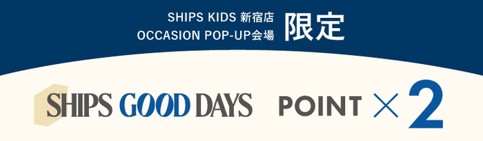 同期間に〈SHIPS GOOD DAYS〉ダブルポイントキャンペーンを開催いたします。 期間中にお買い上げいただくとSHIPS Member’s Clubのポイントが通常の2倍に!