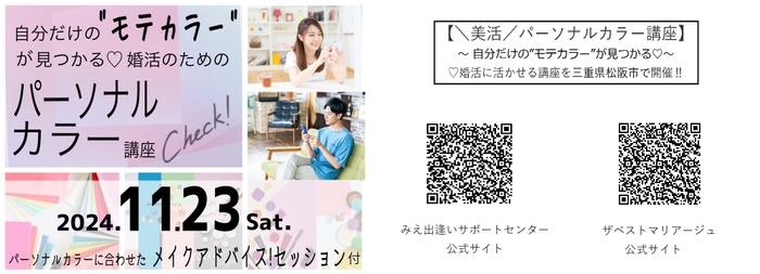 結婚相談所を運営するザベストマリアージュは、独身男性・女性を対象とした♡婚活のための「パーソナルカラー講座」を11月23日(土)に三重県・松阪市の産業振興センター2Fにて行います。