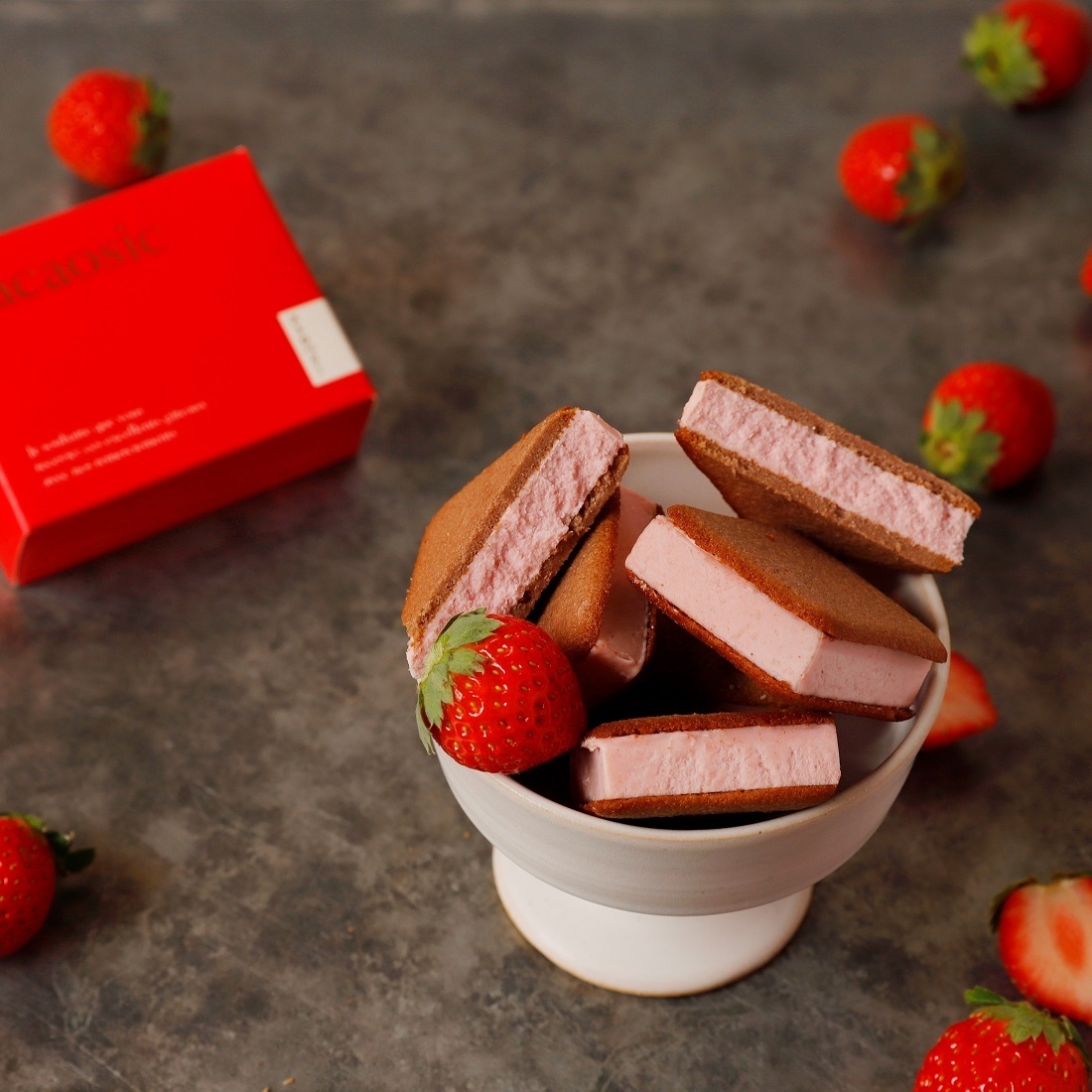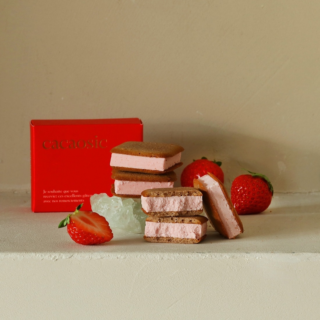 甘酸っぱいストロベリーチョコレートをラングドシャでサンドした、贅沢なチョコレートサンドウィッチ。口に広がる華やかな香りと、フレッシュな苺を味わったときのような爽やかな酸味が絶妙なアクセントです。