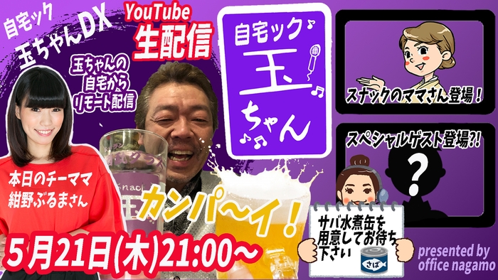 YouTubeでカンパ~イ!玉袋筋太郎が自宅deスナック 『自宅ック玉ちゃんDX』にパワーアップして新装開店! スペシャルゲストも登場!?毎木21時~生配信