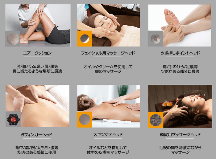フェイシャルマッサージヘッド、スキンケアヘッド、頭皮マッサージヘッドのアタッチメントは女性にはもちろん、最近は男性からの支持もあり気軽に普段気軽に行う事ができないケアができるという事で大変人気です!