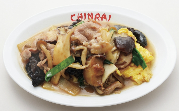 キクラゲのコリコリした食感、ふんわり卵と肉をタレにからめていただく。山東料理を代表する「木須肉」は珍來でも人気の定番商品。その「木須肉」にきのこを纏い昨年登場したのが「きのこ 木須肉」。大好評にお応えしてこの秋再登場!木須肉(ムースールー、ムースーロー、ムシュロウ)表記は様々ですが中国語の読み方なのでどれでもよろしいのではないでしょうか。キスニク?ですか?!よろしいのではないでしょうか。