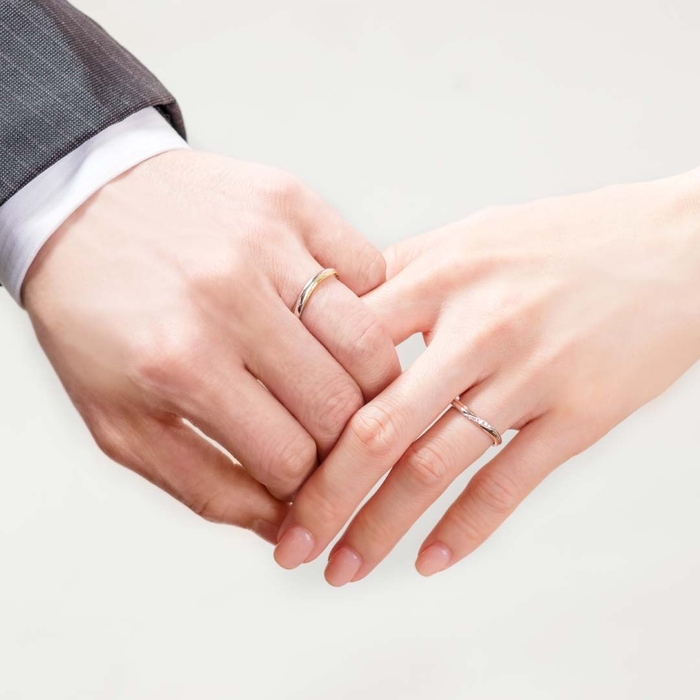 このほどの新作「Calore -カローレ-」は、 “あたたかく優しい愛で、ふたり支え合って”という想いをコンセプトに、プラチナにあたたかみのあるゴールドのラインがアクセントになった、コンビリング(2種類の素材を使用した指輪)です。