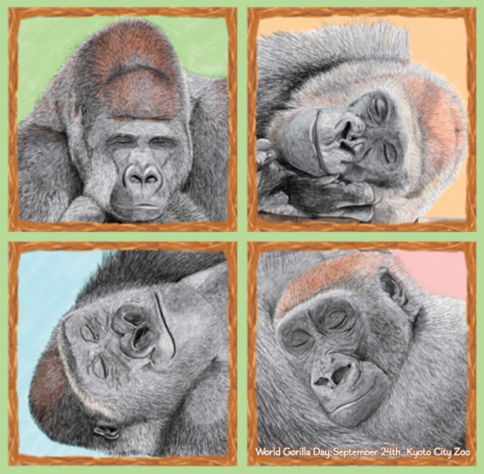 確かに、リラックスして眠っている姿もまた、動物園だからこそ見られる姿。京都市動物園のゴリラ一家、モモタロウ・ゲンキ・ゲンタロウ・キンタロウの4頭のリラックスした寝顔をとおして、起きている時とは一味違う、ゴリラの新たな魅力を知るきっかけにして欲しいと思います。