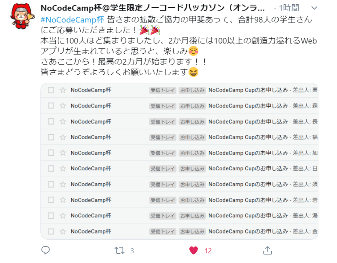 7月から始まる、NoCodeのハッカソンは、98名の方に参加表明頂きました!