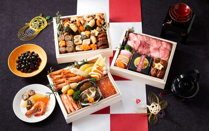 有馬温泉「天地の宿 奥の細道」館主兼料理人の大田 忠道氏が陸前高田のイクラやアワビなどを使用して作る豪華なおせちです。震災後に何度も足を運び、これまでも陸前高田の特産品を作った商品開発にもご協力していただいた縁で快く引き受けていただきました。