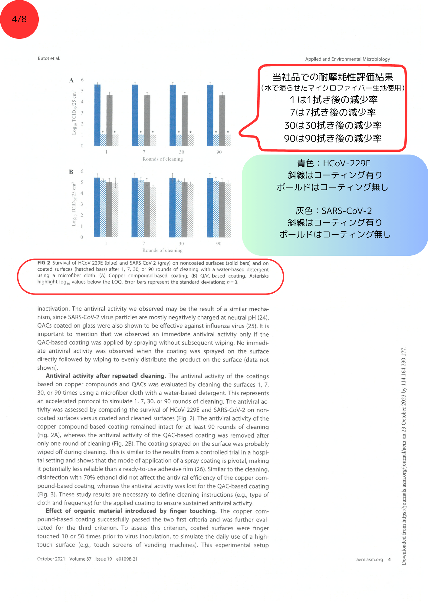 銅イオンのナノテクノロジーで万能型抗ウイルス性を発揮しており、各種バクテリア、エンベロープ有り無しウイルスに有効です。15分以内に99%不活性化を達成しており、99回擦った後も効力は持続します。有効成分として銅イオンを採用しているため、アルコールのように気化して効力を失うことはなく、乾燥しても再度水で潤いを与えればコーティングシートとしての機能が復活します。各家庭での超長期備蓄に最適な防災備品です。