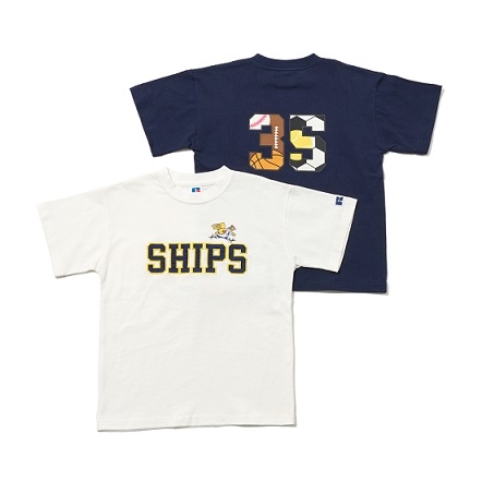 フロント部分は「SHIPS」ロゴの上をラッセルのキャラクターが駆け回るデザイン。バックには、オリンピックイヤーにちなんで、さまざまな球技のボールが隠れた「35」のナンバリングロゴがプリントされています。