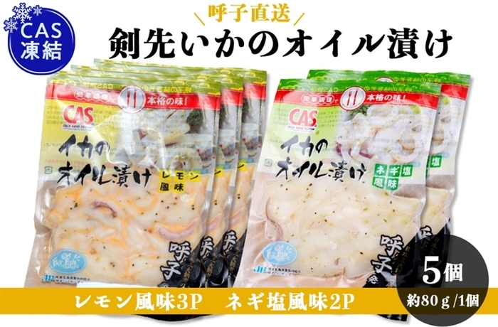 「呼子剣先いかのオイル漬け」は、呼子町産(佐賀県唐津市)の新鮮な“剣先いか”を使った本格派のオイル漬けで、味はレモン風味、ネギ塩風味の2種類があります。