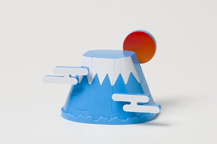『富士山』の文字を組み立てると、全高60mmの富士山に早変わり。カラーバリエーションも、雄大な青富士を模したブルーVer.、月夜の詫び寂びを感じさせる蓄光Ver.(ホワイト)をご用意しました。また完成モデルに太陽(月)、雪、雲の3種のシールを貼ることで、ブルーVer.はご来光を、蓄光Ver.は月夜を表現することができ、臨場感をさらにアップさせて楽しむことができます。