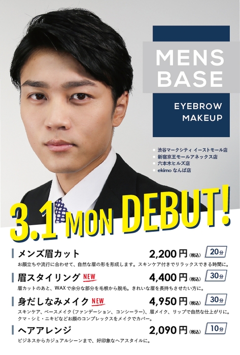 ヘアメイク専門店「アトリエはるか」から、男性向けサービスに特化したブランド「MENS BASE」が3/1(月)新登場!!
