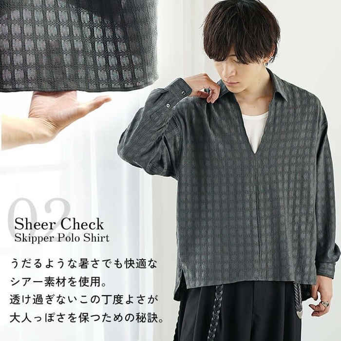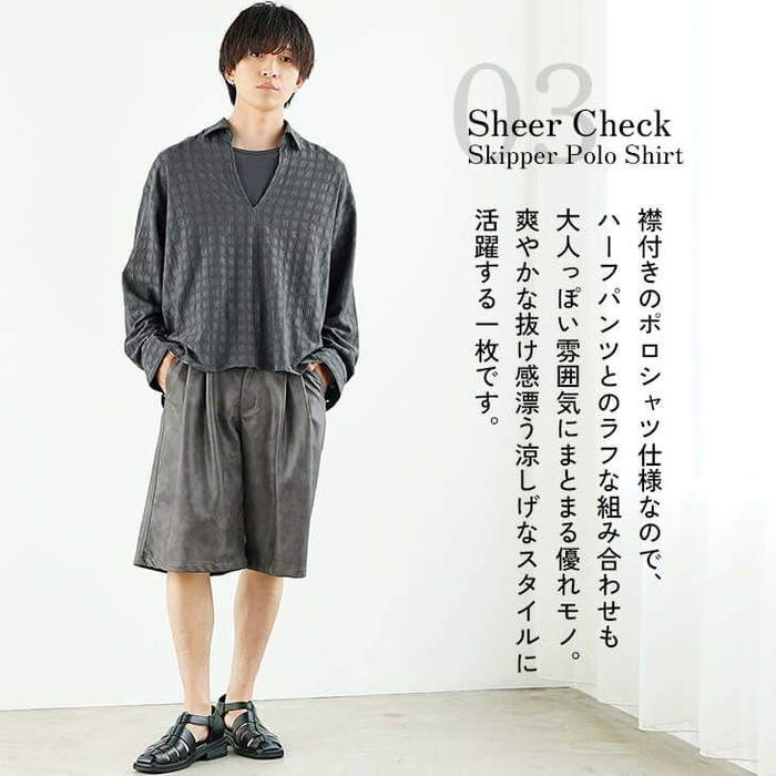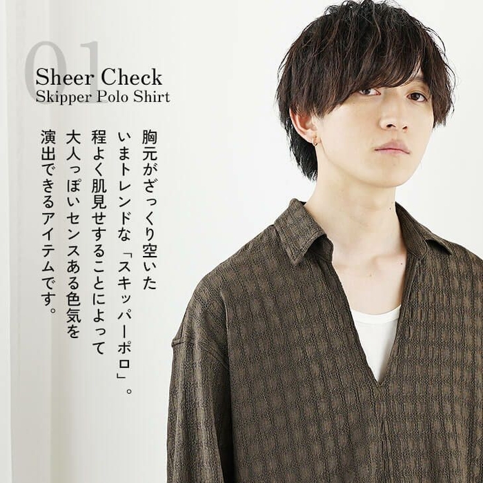 【NEW】抜け感と色気を兼ね備えた「シアーチェックスキッパーポロシャツ」