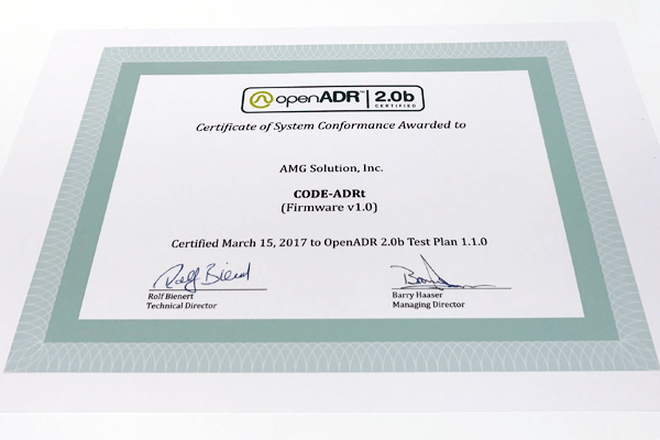 また当社は、2017年3月15日にOpenADR2.0b(VTN)のすべてのプロダクトタイプの認証を取得しました。