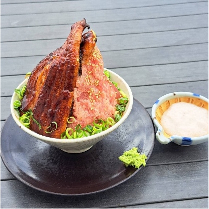 うなぎとまぐろの二大食材を使用した“スタミナ丼”。濃厚なうなぎのタレと、脂の乗ったまぐろの相性は抜群。インスタ映え間違いなし。
