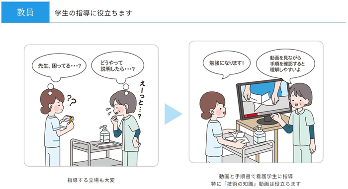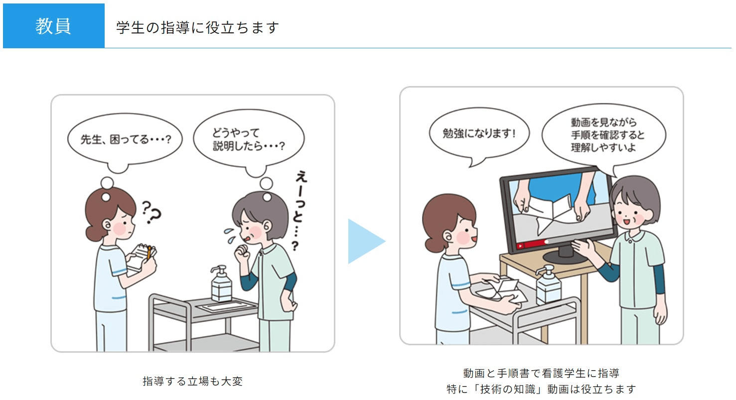 ・看護手順書と連動した最新の技術映像を看護の専門家チームが制作