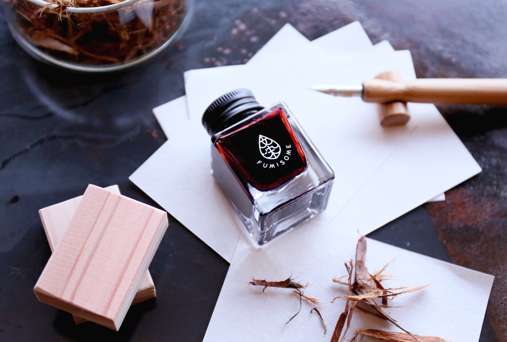 富山県氷見市にある約140年続く老舗の木材屋です。京都の文具メーカータケダ事務機と氷見の杉の皮から作った天然染料インクを共同開発。木のぬくもりが感じられる優しく深い褐色の色合いと、杉の凝縮された豊かな香りをお楽しみください。