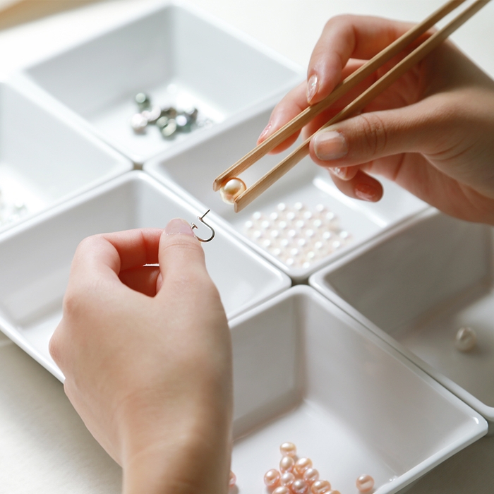 3日間限定で、職人がその場でご希望のジュエリーを製作し、当日お持ち帰りいただけます。オーダー後、パールに穴を開けてジュエリーをお作りいたします。完成までは約1時間~1時間半。お待ちの間は普段見ることの出来ない職人の製作の様子や商品をご覧いただいたり、蔦屋家電でまったり過ごしたり、二子玉川でお買い物に出かけていただくなど自由にお過ごしいただけます。