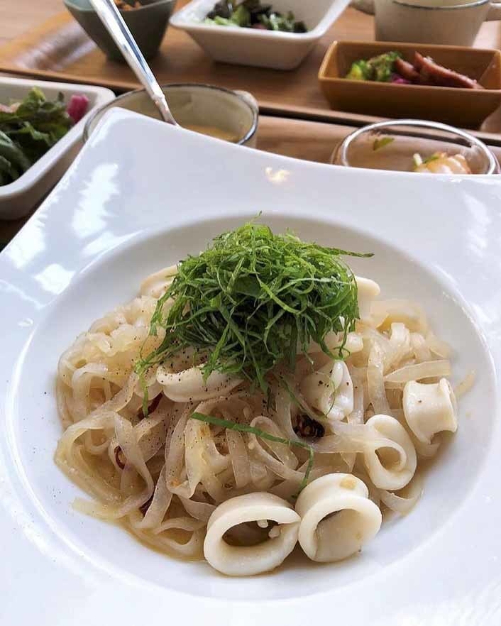 このマンナンを使用した米粒や麺は、独自の製法で無味無臭の上、ソースやスープなどに馴染みやすく普通のライスやパスタ、ヌードルを食べているのとほとんど変わらず食べられる優れもの。さらにもちもちの食感が加わり食べ応えもあります。キッチンナカキ+では、ライス、パスタ、ヌードルの主食料理をはじめ、ライスペーパーの代わりにマンナンシートを使用した「えびとアボカドの生春巻き」などさまざまな料理にこのマンナンを使用した食材を取り入れ、ストレスなく美味しくカロリー・糖質をカットできます。