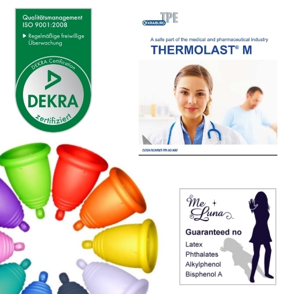 『メルーナ』は世界中で注目されている月経用カップ。日本の医療機器として正式に認可されています(医療機器番号:27B3X00292000001)。『メルーナ』の原料はシリコンやラテックスを含まない低アレルギー性TPE。審査の厳しいドイツの医療機器や赤ちゃんの哺乳瓶の乳首に使用されています。柔軟で折りたたみやすく初心者でも扱いやすいのが特長です。