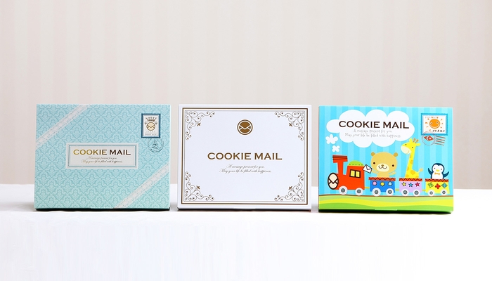そして専用のギフト箱も3種類から選ぶことが可能。[ホワイト&ゴールド]はどんなシーンにも合うクッキーメールの代表的なデザイン。女性に人気のギフト箱が[ブルーアンティーク]。そして、お子様へのギフトに人気なのが[アニマルポップ]。贈る人にあわせて、3タイプから選ぶことができます。
