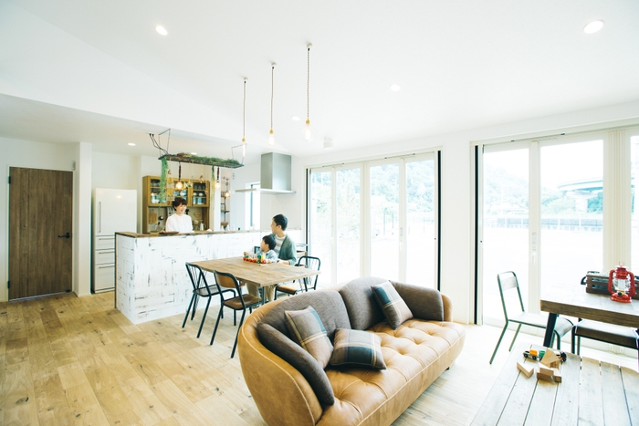 当商品の床には「可視光型光触媒」の技術を用いて、太陽光や蛍光灯、LEDなどの室内照明や自然光が当たるだけで触媒作用が働き、床に付着したウイルスや菌を分解・除去し、室内に漂うウイルスや菌を洗い流すことができるという機能をもったフローリングを使用します。