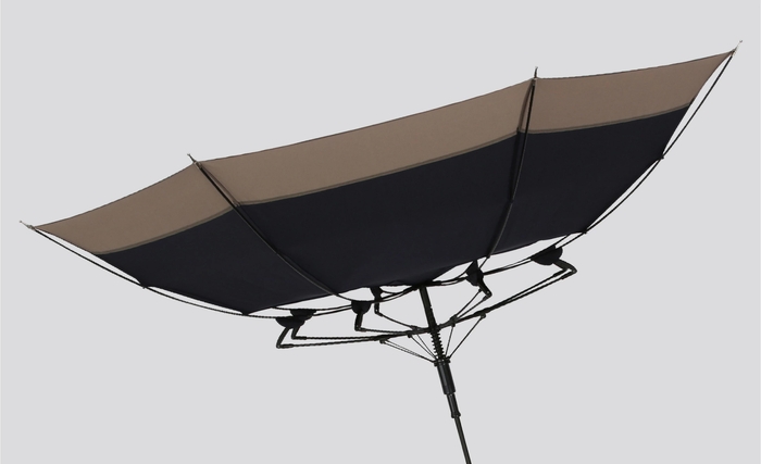 風に強い耐風構造骨を採用しているので、風の強い日に傘が逆さになってしまっても大丈夫。いつものように傘を閉じる動作でカンタンに元通りになります。