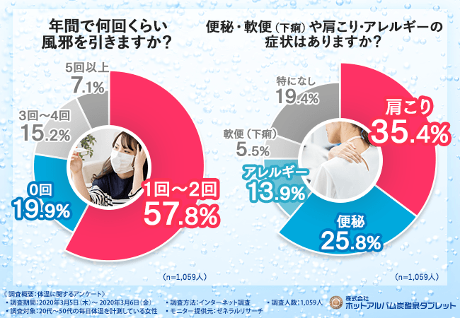 そこで今回、株式会社ホットアルバム炭酸泉タブレット(http://tansan-tablet.com/)は、20代~50代の毎日体温を計測している女性を対象に、「体温に関するアンケート」を実施しました。
