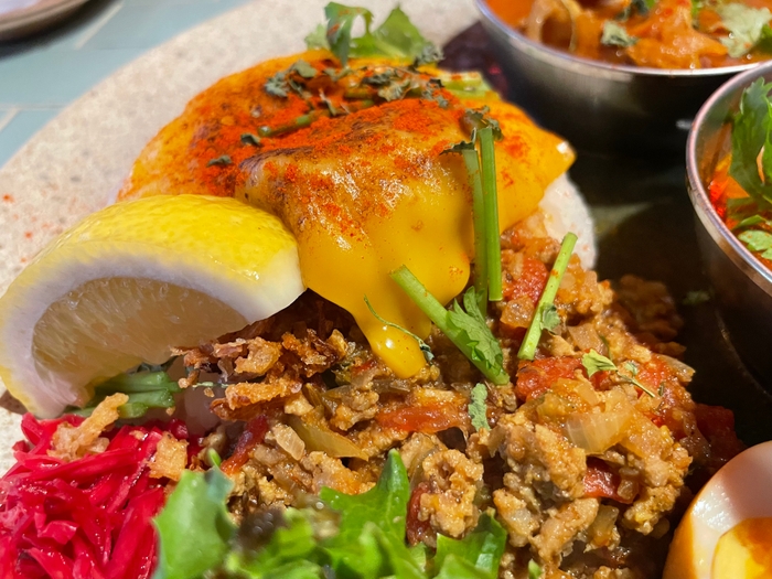 - ビーフとポークの合い挽き改良キーマ: 移転後に改良されたキーマカレーはパクチーとの相性抜群。