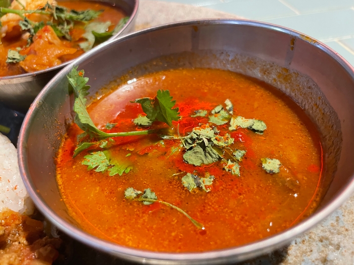 - タイ風シュリンプチキンカレー: 海老とチキンの出汁が効いた酸味のあるカレーで、寿司屋ならではのプリプリの海老が特長。