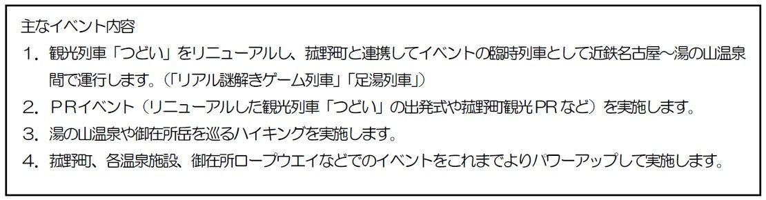 4.菰野町、各温泉施設、御在所ロープウエイなどでのイベントをパワーアップして