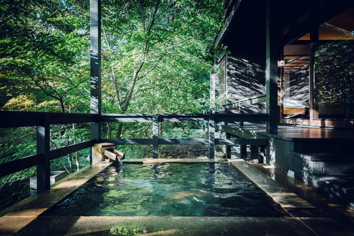 「トマト宝石重」で糖分と水分補給をした後は、夏の強い紫外線で火照り弱ったお肌を「トマト石鹸」と弱アルカリ性の温泉水で優しくケアします。「トマト石鹸」は、コールドプレスで作られた優しい処方のトマト石鹸です。手作りの優しい処方のトマト石鹸は、紫外線を浴びたお肌を労わりながら穏やかに洗います。温泉に入り血液循環が促され、忙しい日々で疲労した身体が疲労回復することで、お肌の調子も整います。入浴後はしっかりと水分補給とスキンケアをすることで、お肌が明るくふっくらと潤います。日々の喧騒から離れ小鳥の囀りや木々の香りで心身ともに癒されるひと時を提案します。