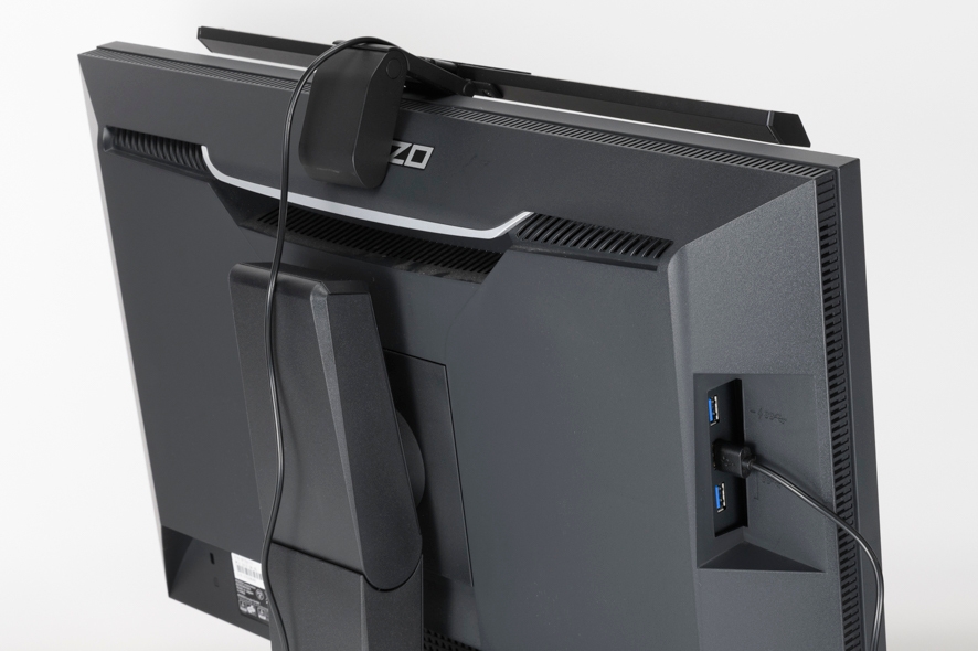 色に正確性を求められる仕事柄、撮影商品やプリントをモニターで色確認をする場合、明るさにムラがないのがありがたい。しかも、モニターに光が当たらない設計なので、モニターの色ムラも防げる。パソコン周りは何かと手狭になりがちだが、モニターの上に取り付けるだけと、ライトを取り付けるスペースが全くいらないのが嬉しい。