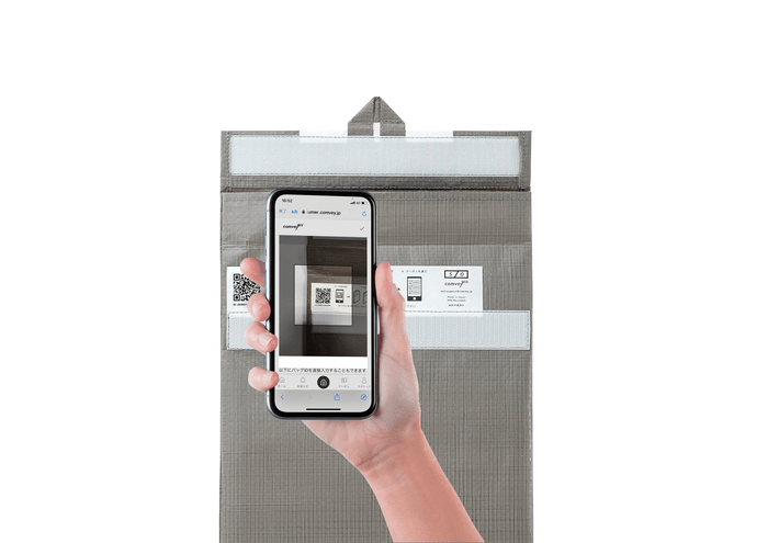 届いたシェアバッグに貼付されている二次元コードを読み取り、comveyマイページへの会員登録を行ってください。(シェアバッグ返却確認後、comveyマイページ内でクーポンが発行されます)