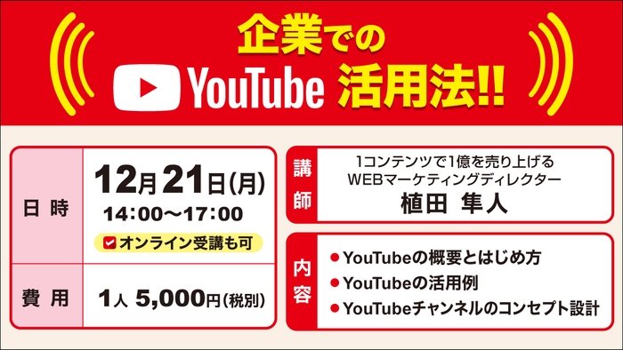 まずはYouTube媒体を知る為にお気軽にご参加ください。